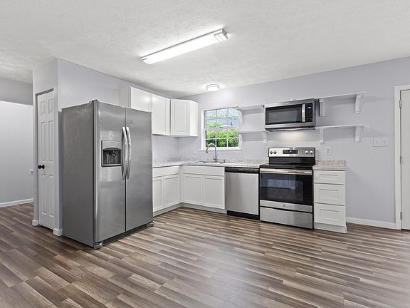 Check out this newly renovated, 3 bedroom, 2 bathroom cape cod style, Georgetown home! This freshly landscaped home sits on just under a quarter acre lot and is located at the end of a private cul-de-sac. Upon entering the home you are greeted by a freshly redone, open concept living room and kitchen that opens up to your backyard allowing for plenty of space of entertaining. You'll enjoy the convenience of a first floor primary suite and utility room with two additional bedrooms located upstairs. Outside, you'll enjoy the warmer months on your concrete patio and your large yard surrounded by fully grown trees that truly enhancing the privacy of this home. Make sure to schedule your showing today!