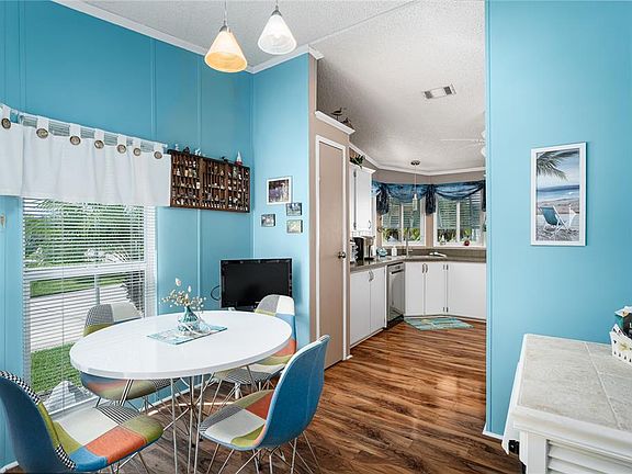 Serene water views and beautifully maintained, this turnkey furnished home is freshly painted inside and out ready for its new owners. Move-in ready with 2 bedrooms, 2 bathrooms and perfectly situated on a quiet pond lot in the desirable 55+ land-owned community of Ridgewood Oaks. The home offers great curb appeal with a custom driveway, LeafFilter gutter guards guaranteed for life, and a welcoming front porch finished in elegant porcelain tile. Inside, the open floor plan features vaulted ceilings, abundant natural light, skylights and beautiful laminate flooring in key areas. The spacious living and dining areas flow seamlessly together, with built-in dining room storage and plenty of room for entertaining. The eat-in kitchen is both stylish and functional, showcasing newer stainless-steel appliances, freshly painted cabinets, new kitchen faucet, beautiful counters and large windows that create a bright, cheerful space. The primary suite is generously sized with a king bed, a large walk-in closet, and an updated ensuite bathroom featuring a Bath Fitter tiled shower installed in 2018. The second bedroom is perfect for guests or a home office, while the separate laundry room offers newer appliances, extra cabinetry, and a convenient folding station. A fully enclosed all-weather lanai off the laundry room provides a relaxing spot to enjoy tranquil water views and Florida’s natural beauty. Additional highlights include a newer roof (2022), newer AC and ductwork (2018) and an oversized workshop/storage shed offering ample workspace and storage options. With low quarterly fees that cover internet, cable and lawn maintenance this home provides easy, low-maintenance living. Residents of Ridgewood Oaks enjoy resort-style amenities including a clubhouse, pool, spa, tennis and pickleball courts, shuffleboard, and an outdoor fitness area. The community is golf cart and small-pet friendly, with 24-hour gated security and convenient access to I-75 and I-275 to Sarasota, Tampa, St. Pete, Clearwater and Tampa as well as a multitude of new restaurants, shopping, the Ellenton Outlet Mall, and the beautiful beaches of Anna Maria Island.