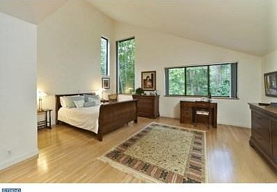 This custom designed dramatic redwood & glass contemporary house offers large light-filled open spaces with high ceilings and beautiful views in a private wooded setting. At the heart of the house is a spacious & stunning state-of-the-art kitchen with high-end appliances and informal dining area. A family bedroom wing has its own recreation area while the secluded master bedroom suite has a study nearby. A finished walk-out lower level has another bedroom, bathroom, living room and mini-kitchen, perfect for an in-law suite. A 5 car garage provides ample area for cars, storage and work-space. This quiet neighborhood is will located and close to town.