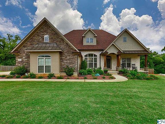 Gorgeous brick and stone house. Amazing fireplace. Open floor plan. 4 bedroom.3 bath. Fresh paint. Covered front porch. Covered Huge back patio with stamped concrete. Built in 2015. Home is in the cul de sac of an established community. Access to the Flint River. Large lot. Privacy fence. Above ground garden in backyard. Perfect home for family that enjoys the outdoors and entertaining. Amazing schools that are highly rated on Great Schools. 20 Minutes from Redstone Arsenal and downtown. Quiet community and friendly neighbors.