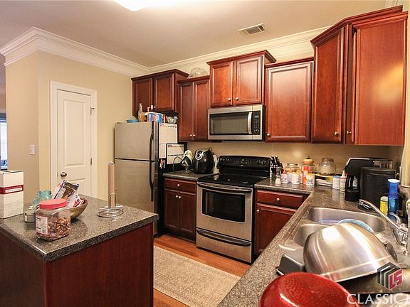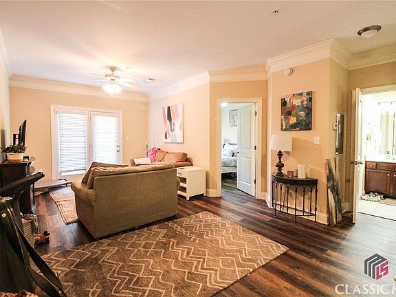 You will love this condo's floor plan. Large dining room and family room. Kitchen has abundant cabinets, granite look counter tops, stainless appliances and bar for stools. Hardwood, new wood look luxury vinyl and tile floors. 2 pantries. 2 coat closets. Washer and dryer included. Twin closets in each bedroom. Split bedroom plan. Front and rear balcony. One level on 3rd floor. New HVAC. 1.5 miles to UGA campus and 3 miles to Downtown Athens. Leased through July 2024 for $1350 month. Rental brokers indicate market rent in 2024 should be $1500 per month. 8% fee management contract with local management company may be transferred to new owner or termination negotiated.