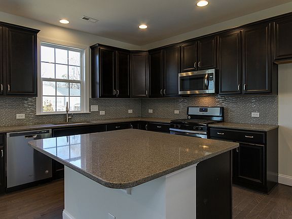 This Rockwell floor plan features, quartz countertops, butler's pantry, tile backsplash in kitchen, fireplace in great room, first-floor guest suite, luxury owner's bath with garden soaking tub, double bowl vanity in hall bath, pull down Moen kitchen faucet, and screened porch that includes a ceiling fan and light.