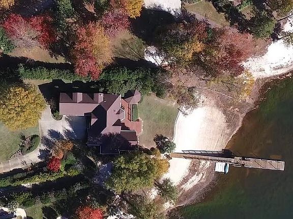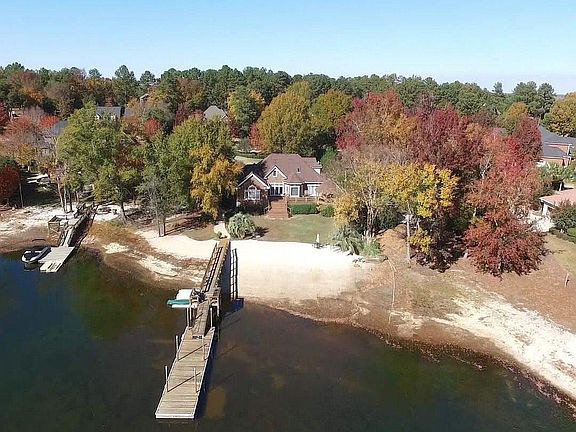 Pillared lights, circular drive and extensive, lush professional landscaping welcome you to this all brick, ranch style home featuring TWO MASTERS ON MAIN. Each has its own lake views, private access to the expansive composite deck, gazebo and each featuring a spa like bath. Kitchen and great room recently updated, with granite, tile, stone and stunning hardwoods. Located on a rare, pristine sandy beach. You'll be surprised to find a teen/in-law suite (including full bath) up with a sitting room as well as a huge game/media room and office space. 3 car garage, gated community with boat ramp. Conveniently located just outside the Town of Lexington.