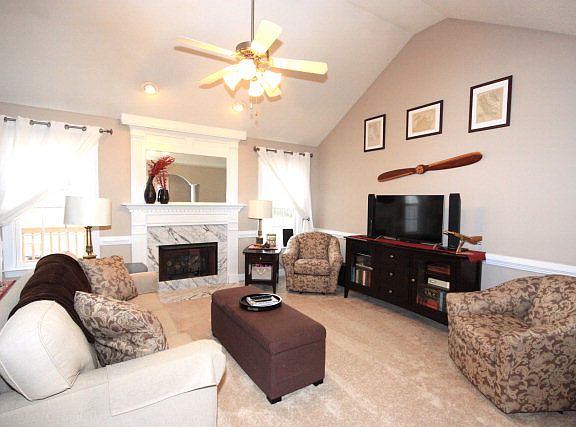 Charming 3 bedroom home with FINISHED bonus room in Marsh Landing Subdivision. Living room features vaulted ceilings, new carpet flooring, gas log fireplace and is bright and open to the dining area. Large kitchen has new tile flooring, subway tile backsplash, built in shelves, granite counter tops and breakfast bar. Home is a split bedroom floor plan. Master suite is large and has walk in closet. Master bath has his & her sinks, jetted tub and stand up shower. Second level has finished bonus room. Great yard, almost 1 acre lot, with large freshly stained deck and storage shed. NEW ROOF, NEW CARPET & TILE FLOORING. Riding lawnmower, washer, dryer and refrigerator to convey with acceptable offer.