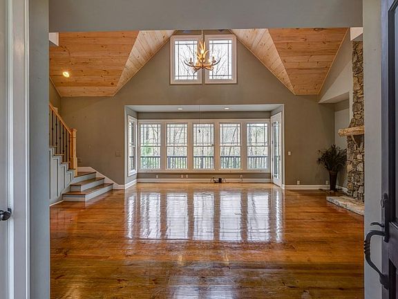 IMPRESSIVE Cedar Shake Chalet with Mountain Views is waiting for you! Drive up to this 3 bed/3 bath-2 half bath home and step into your Great Room with wood floor, ceiling, & a stone fireplace to warm the chilly evenings.Your separate dining/sunroom has 3 walls of floor to ceiling windows for natural sunlight & to enjoy the beautiful scenery. Custom kitchen with ample cabinets, twin wine racks, black appliances & solid surface countertops. Down the hallway is the Master Bedroom Suite with French door access to your deck, tile shower with twin vanities. Upstairs is 2 identical guest Master Ensuite. Basement with Rec Room, Bonus room & half bath.