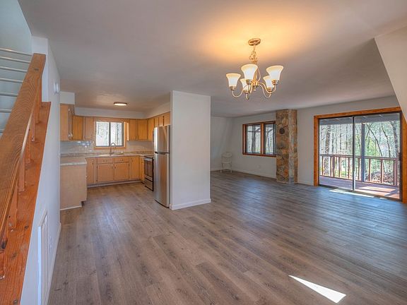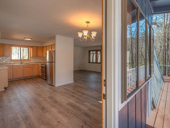 Charming 3 BR 2 BA A Frame home, sitting on a private 1.03 acre wooded lot. Sit back and relax in this open floor plan looking through your many windows at a seasonal short range view. This home is move in ready with new heating and air, fresh new interior paint, new fixtures, new flooring and new appliances. There is plenty of storage inside and out. This property has a 2 car garage on a concrete slab and a carport as well. Super convenient area close to Murphy, Harrah's Cherokee Valley River Casino, Andrews, Hayesville, Lake Chatuge, Lake HIwassee, hiking, rafting, fishing---everything this beautiful area has to offer!!