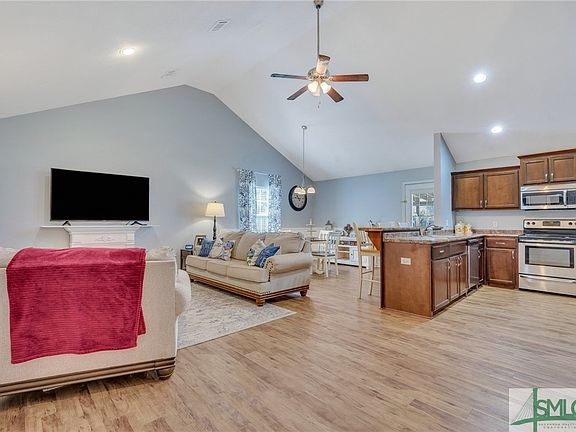 Step inside this deceptively spacious 4-bedroom, 2-bath home in the desirable South Bend subdivision of Guyton, GA, and be amazed by its open and inviting atmosphere. Boasting high ceilings in the living room and kitchen area, this property features beautiful laminate flooring, enhancing its expansive feel. Nestled in the Marlow school district and just a stone's throw from South Effingham High School, this home is ideally located. With a 2-car attached garage and a meticulously maintained fenced yard, it combines convenience with style. Only 12 miles from the Hyundai Metaplant, this residence promises comfort, quality, and easy access to local amenities.