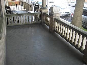 Beautiful arts & crafts home of days gone by. Front vestibule entry area w/ decorative, beautiful tile. Large LR w/ stained glass transom window can be divided into two areas. Pellet Stove insert in LR fireplace. Notice the hand painted mural over the FP & on four walls in DR from well known 1920's artist R Janert. Kitchen has been remodeled w/ newer cabinets, countertops, breakfast bar & newer period stove. 2nd floor has 3 good sized bedrooms, full bath w/ one of a kind closet, & a back covered porch. 3rd floor has two more bedrooms. Please notice the inlaid hardwood floors. The fenced yard has a deck & 1 car garage. Relax on the front covered porch. There is a full basement & a grocer's alley, both great for storage. 200 amp electric. In 2018 & 2019 updates: 2nd floor roof, gas heat & hot water heater, bsmt pvc plumbing, exterior home painted. The property has been well maintained & is waiting for your touches. All appliances stay. Has a clear C/O from Allentown. Property sold as-is