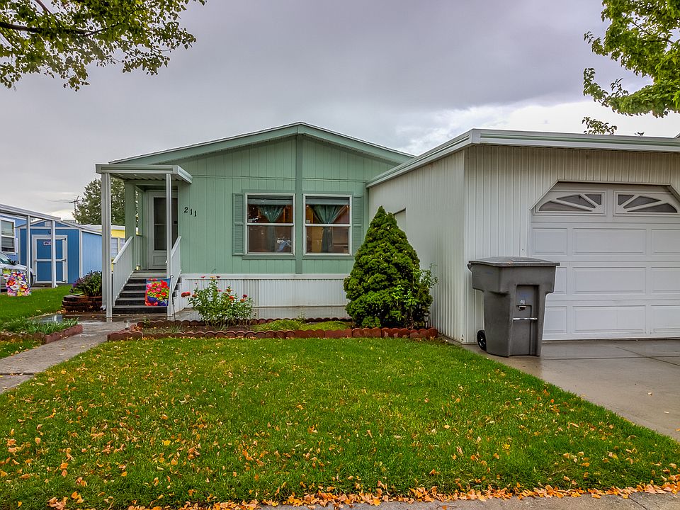 Nice double wide mobile home built 1997, central air, enclosed garage, walk in tub, move in ready, tough shed (10'x 12'x7' ), sprinklers on timers, roof replaced 2012, HOA- in 7 C's Senior Community- rent of property $540 (month) $45,000 for buyers with agents.