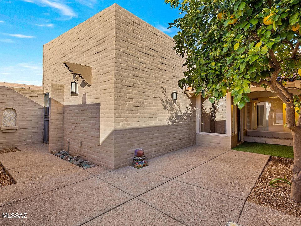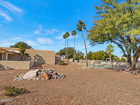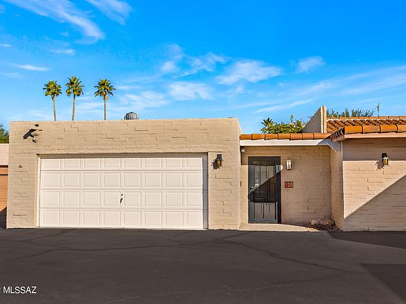 In La Esperanza, a well-maintained 30-home community, you'll discover mid-century ambiance & high-quality custom upgrades throughout this delightful townhome. Enjoy views of the Catalina Mountains, community pool and grounds from the kitchen, owner's suite & covered patio. Pick sweet grapefruit from the tree in the gated courtyard entry. Generous-sized rooms have large picture windows & many skylights to bring the outside in. Kitchen offers custom cabinetry with high-end refrigerator & gas range. Breakfast nook opens to the covered patio. Dining room overlooks the vaulted-ceiling living room which has clerestory windows & gas beehive fireplace. Large bedrooms with walk-in closets, beautifully remodeled bathrooms, and a two-car garage with workshop complete this great home!