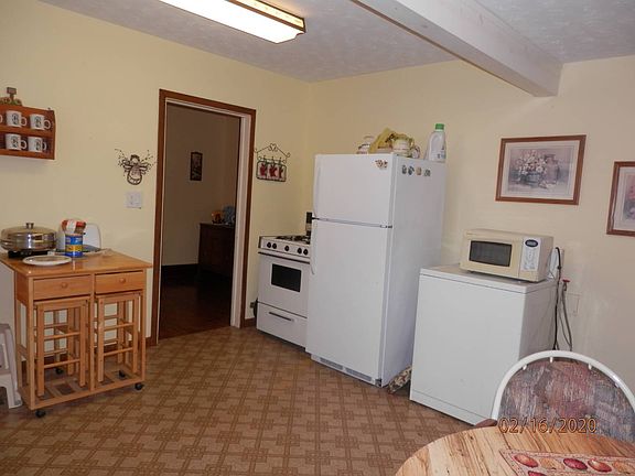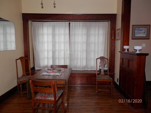 This two-bedroom, one bath bungalow has many unique features. A welcoming front porch extends across the entire front of the house. The open plan living and dining rooms are separated with Arts and Crafts style pillars above book cases. The dining room features a bay window with window seat which opens for storage. Both have original hardwood floors and much of the house retains the original woodwork and trim. The bedrooms are separated with a Jack and Jill style bathroom. The kitchen is large enough to include an eating area. The unfinished basement has been divided into several rooms and adds valuable storage. The unattached, single garage has a long concrete approach providing off -street parking for several vehicles. This lovely house has been used as a lodge and vacation home, but would also make an ideal starter home for a young family or is a great choice for someone who wishes to downsize.