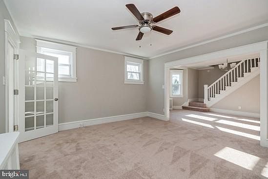 Price reduced! You will find this 3 bedroom, 1.5 bath twin has been freshly painted in a neutral palette with new carpeting. It also features an enclosed porch, living room, dining room with bay window, and updated eat-in kitchen, and half bath on the main level. The upper floor features 3 bedrooms with a bay window in the primary bedroom and a full bath. Additional features include full basement, gas heat, shed, fenced yard, parking in the rear, and more. Easy to show. Bring offers!