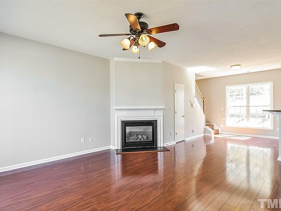 This Fuquay Varina two-story home offers a fireplace, stainless steel appliances, granite kitchen countertops, master bathroom with sitting vanity, screen-enclosed covered deck, and one-car garage. Upgraded features include new HVAC and carpeting and fresh interior paint.