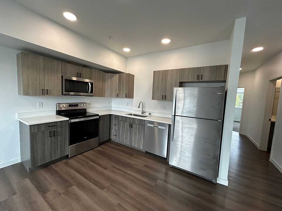 - High end finishes: Beautiful flooring, new kitchen with quality appliances, generous counter space, and ample cabinet storage.