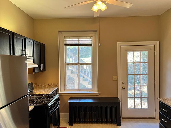Historic Charm. Just Beautiful. Recently remodeled. Walking distance to everything downtown Staunton. Hardwood floors, high ceilings, freshly painted. 1-2 bedroom, 1 & 1/2 baths. Large rooms. Laundry included. Appliances include gas range, refrigerator, Dishwasher, washer and dryer and window AC units. Large wrap around porch with stunning city views. Rear brick patio. This is a smoke free property. Easy commute to Charlottesville, Harrisonburg, Lexington. Landlord pays for water, sewer, and trash. Tenant pays electric and gas. Rent: $1,350; Deposit: $1,350. Available now. 1 year lease. First month and security due prior to move in. Landlord pays for water, sewer an trash. We do. not permit pets. This is a smoke free property