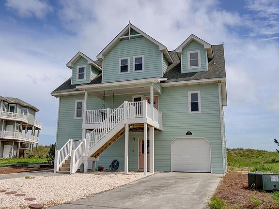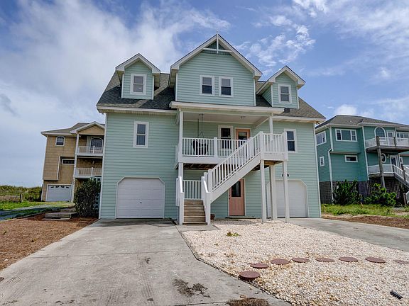 Don't miss this beautiful, updated three bedroom, 3 and a half bath, custom built, elegant and newly furnished home in the popular Village at Stump Sound with gourmet kitchen, bamboo floors, two master bedroom suites, upscale bathrooms, and gorgeous ocean views. Recent improvements include resurfaced kitchen cabinets, newly painted interior and exterior, upstairs carpet replaced with bamboo floors, and all deck railing upgraded to vinyl railing. Quality construction includes hardi-plank exterior siding, granite countertops, upgraded cabinetry, built-ins in the living area, two screened porches, and two enclosed garage parking areas. The neighborhood provides a spacious oceanfront clubhouse for special events along with a swimming pool, tennis court, and dedicated launch ramp for small