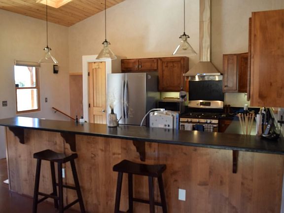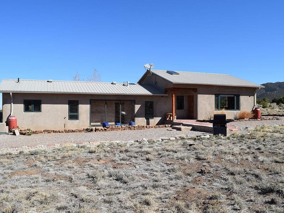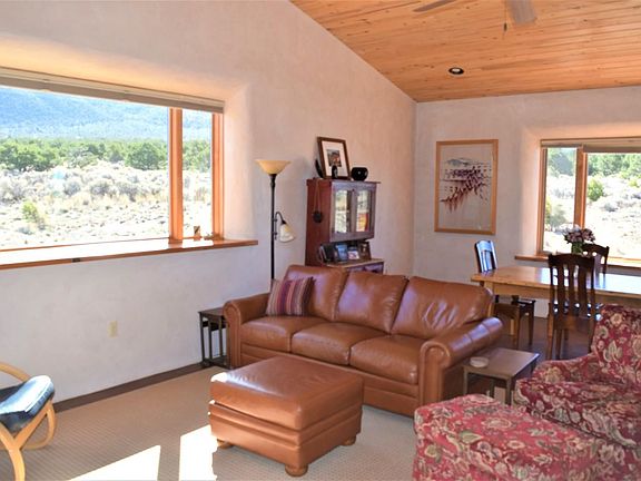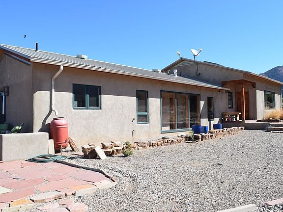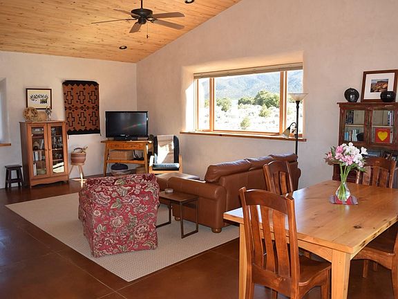 The custom-built pumice-crete home was designed from the ground up to reflect the colors of the land both inside and out bringing mountain views into every room. 18" thick walls provide extraordinary energy efficiency. Subtle colors embedded in the artisanal plaster change with the outside lighting. Soapstone kitchen counters. Walled deck with mountain views to the east and the Rio Grande Gorge to the west. Combination of thermal mass, passive solar gain and in floor radiant heat offer constant comforting warmth in winter. Cool in the summer. Nestled in the El Rito/Latir community. Once you have seen this beautiful haven, you may not want to leave!