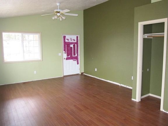 HUD Home. Light and bright 2 bedroom home with covered porch and patio, vaulted ceilings and plant shelves, central vaccum easy to maintain yardwith no back neighbors and vinyl split-rail fencing next to common area of subdivision. Stucco accents & covered porch. Disclosures: HOA fee is $ 120 per year. Repairs: Install missing flooring, Leak at hot water line in laundry area