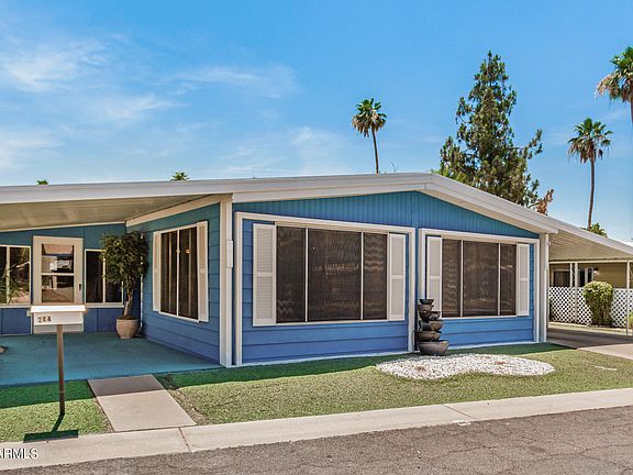 Beautifully Updated * Lots of space in this 2 Bed 2 bath Home * Completely Renovated * The open layout provides a generous amount of space to live comfortably & Now fully upgraded & Includes: Sleek Vinyl Hardwood Flooring * Gorgeous Vanity for the Master Bath & Much More * Home Features a Large Shed with Lots of Storage * Including Room for full size Washer & Dryer * Enjoy the Spacious Arizona Room * No HOA but Community Lot Rent Is: $1,035 Plus water, trash & sewer * Located in a Gated Golf Course, This Is A 55+ Community.