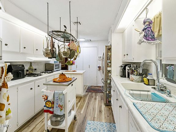 Beautifully upgraded 3BR/2BA, + Den featuring Built ins, and fireplace, PLUS a bonus room—perfect for guests, office, or hobbies. Sunken living room, shutter blinds throughout, even a window bench in second bedroom. Recent upgrades throughout include new flooring, fresh paint inside and out, new appliances, and updated fixtures Enjoy a front enclosed patio, and a fenced covered patio in back, AND a workshop. A private jacuzzi, and plenty of storage inside and out. Corner lot offers extra privacy, ample parking, and a unique landmark totem pole in the front yard. Move-in ready and full of charm! Experience comfortable, low-maintenance living in a vibrant community with great amenities! Prepaid home warranty to 2030.