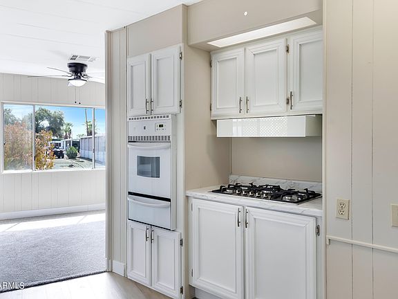 Open kitchen and living room invite you to stay awhile! This home is ground-set in one of the most prestigious age qualified parks in the East Valley. Two beds, two baths, ample parking, with a recently renovated kitchen and new appliances! Beautiful vanities and large baseboards make this home feel spacious and stylish. Outside is a large storage and working shed ready to house any project. Just down the road from the 9 hole putt & chip golf course, as well as the clubhouse and pools. This home is ready for you to make it yours!