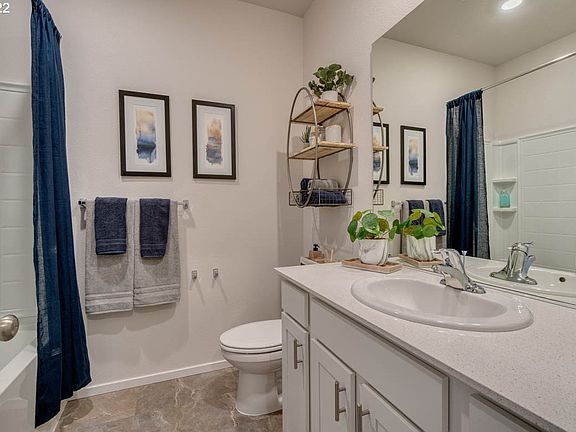 Come see D.R. Horton’s wonderful new community in Salem before it’s too late! East Park Village is just minutes away from the state capitol, and it is situated by Interstate 5, offering ease of transportation around the Greater Salem Area where you can discover shopping centers and local dining options. The marvelous Moreland is a functional one-level floor plan that has 1,630 square feet and boasts 3 bedrooms, and 2 bathrooms. The two front bedrooms are connected by a centrally located full bathroom for enhanced convenience. The laundry room is right by the kitchen and has easy access from the garage. The stylish kitchen is completed with stainless-steel appliances, a practical corner pantry, central island, quartz countertops, gas range/oven with a vent hood, inviting you to unleash your culinary creativity. Adjacent to the kitchen, the dining area is effortlessly connected to the expansive living room. This open-concept layout offers tall ceilings and large windows that fill the space with natural light, perfect for hosting. A centrally located fireplace in the great room adds style and warmth, making it the ideal spot to gather and relax. The primary bedroom offers privacy and comfort with a walk-in closet, an appealing en suite bathroom with a double vanity. Receive a closing cost credit with use of builder’s preferred lender, call for more information. Sales office hours are 9:30am – 4:30pm daily. Be a part of this wonderful community at East Park Village! Photos are representative of plan only and finishes may vary as built.