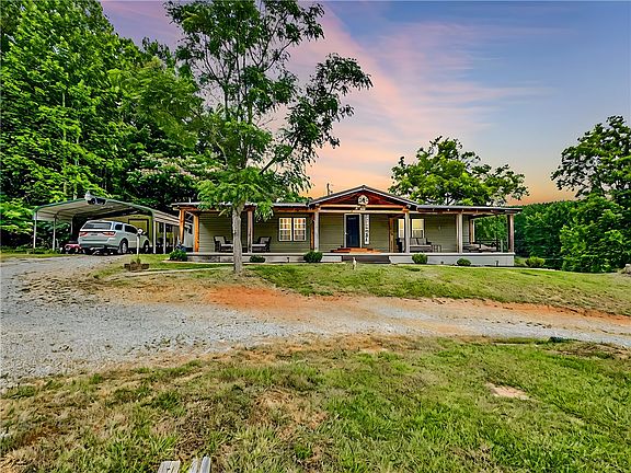 Welcome to your 120 Nicholas Dr! This beautifully updated mobile home, built in 2000, offers a spacious 1,680 square feet of comfortable living space. Boasting 3 bedrooms and 2 bathrooms, this property seamlessly blends modern updates with cozy charm. Step onto the inviting covered front porch and take in the serene views of this 3.74 acre lot… the perfect spot for morning coffee or evening relaxation. Inside, you find a open layout ensuring a seamless flow from room to room, ideal for both everyday living and entertaining. An inviting living area opens to your dining area, an ideal layout for hosting family gatherings. The heart of this home is the modern kitchen, complete with a walk-in pantry and stylish shiplap accents. A hallway accesses two guest bedrooms and a full bathroom. On the other side of the home is a second hallway leading to the walk-in laundry room before arriving at your primary bedroom; a true retreat, featuring two generous closets and a spacious bathroom with a walk-in tiled shower and double vanity. The back porch is perfect for unwinding, with a fire pit patio ready for cozy evenings under the stars. Outside, you'll find a detached large garage workshop with additional attached storage areas, providing ample space for projects and storage. A separate detached carport with an adjoining shed offers even more storage options. Multiple outbuildings and shed convey with purchase. This property offers acreage, an updated interior, extensive storage, and beautiful outdoor areas to enjoy. Conveniently located just off Hwy 28 between Main Street Walhalla and the mountains. Schedule a showing today and experience all it has to offer!