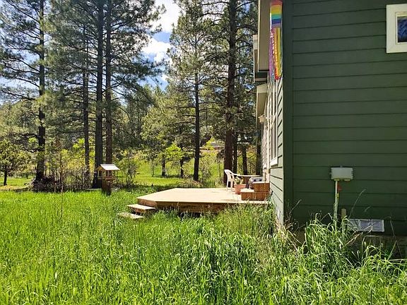 Located in the lovely Timber Ridge area on the north side of Chama, and just a short walk from the 20,000+ acre Sargant Wilderness Area, this three bedroom two bath Karsten home was upgraded to include many custom features. These include, custom wood trim, solid knotty alderwood doors and cabinetry, extra tall windows, saltillo tile floors, a Vernont Casting natural gas stove. One of the two guest bedrooms serves as an office/library and has a built in murphy bed for additional guests. This beautiful home sits on a level 2.4+ acre lot that is covered with tall mature trees including ponderosa pine, gambrel Oak and aspen. there is a spacious patio on the south side of the home, a fenced dog run, a large garden shed and a metal carport. The home has year round access from a maintained road. This would be a great retirement or weekender home. It is close in to all the shopping and services offered buy the Village of Chama. It is close to many recreational opportunities in the area too including, State Parks, rivers, lakes and streams. For any train buffs, the Cumbres & Toltec Scenic Railroad is nearby too. Hike, mountain bike, cross country ski, and snow shoe in the wilderness area or just look at nature. Elk, mule deer and wild turkey make this area their home. This place is a must see property. Come on up and take a look. you'll be glad you did.
