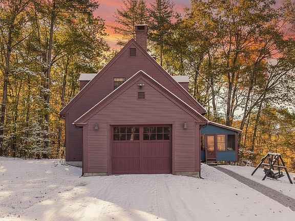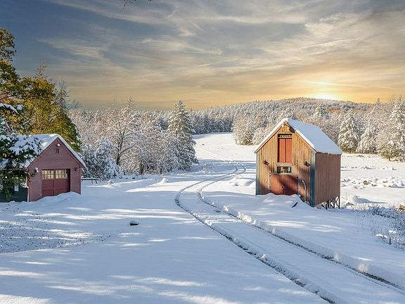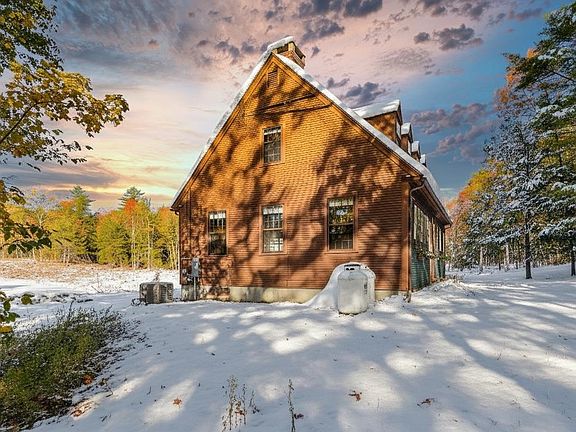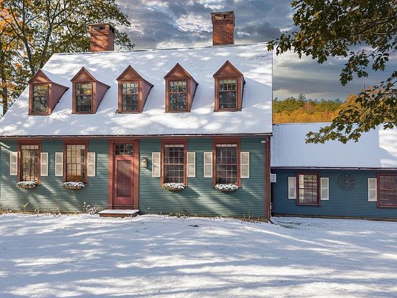Skiers Getaway! Winter Wonderland! Beautiful Year-Round Custom REPLICA Williamsburg Cape on 6 acres is an architectural gem that has been tastefully modernized and is sold lightly furnished with all appliances. Features include wide hard wood floors throughout the home, 10-foot ceilings, large, updated custom kitchen with oversized island and direct access to garage. 2 new Vermont Casting gas stoves, new laundry/bathroom, dining room, living room, large mudroom entrance, 3 season porch overlooking the field, rock walls, wildlife, seasonal brook, and barn. The oversized hallway leads to 2nd floor with a full bath, 2 bedrooms, and a primary bedroom with walk-in closet w/ fireplace. The large windows allow plenty of natural light with custom blinds throughout the home. Whole house automatic generator makes it a perfect year-round home or vacation home which is conveniently located to Woods Pond Beach, Pleasant Mt Ski Resort, Lakes, Hiking, Hospital, Shopping, Professional Businesses, Dining, Golf & Tennis, Skiing and year-round activities.
