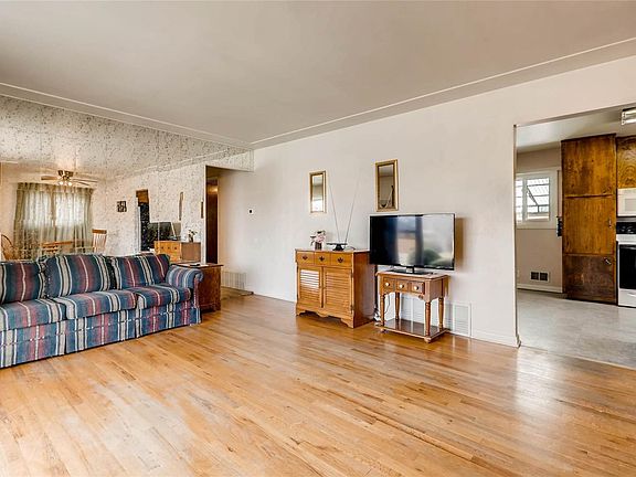 Wonderful 5 bed, 2 bath, brick rancher in a quiet neighborhood. Newer windows, concrete sidewalks, central air conditioning, furnace, brand new roof. Hardwood flooring on the main. Large family room in basement. Covered stone back patio with a fenced backyard. 2 car detached garage. Although this home needs updating and a little TLC in the main bath, it has been well loved. Close to I25 for easy commute going north or south.