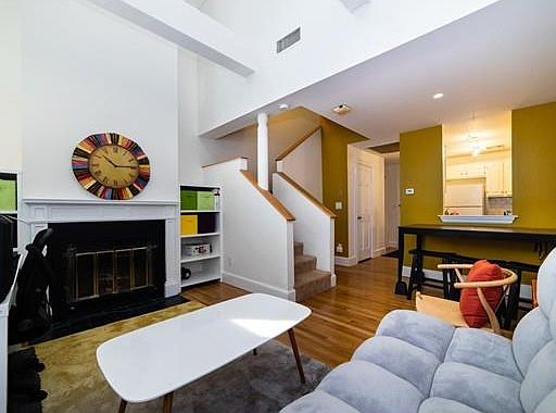 Price Reduction. Sunday OH, 12:30-1:30. Relax in this Fenway condo with a two story high east facing wall with two rows of three windows that defines this one-bedroom loft with Central Air. Hardwood floors greet the first floor visitor leading to the dining and living rooms. Galley style kitchen has granite counters, tile floor and overhead track lighting, range, microwave and refrigerator. Half bath, double closet and fireplace finish off the floor. Carpeted stairway leads to 16 X 14 bedroom loft and master bath. In-unit laundry completes this easy lay out. Locally, features include bus connections and the Symphony T, Whole Foods, Caffe Nero, Symphony Hall, the Fenway, and Boylston Street shops and restaurants. The unit is tenanted through August, rented at $2300/month.