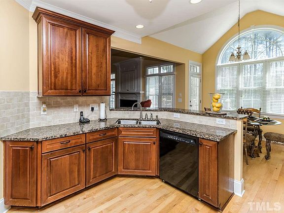 Feel the Space with Grand Entry and vaulted ceilings in the Family room. Enjoy Entertaining on the Oversize Patio surrounded by an acre lot with Fruit trees and Flowers which can be viewed thru the Palladium window in the Breakfast area. Master and Guestroom on the Main Floor. The Space continues with 2 Beds, Bonus and Flex room up. Fresh paint and refinished hardwoods. Community Pool and clubhouse. 10 minutes to Downtown Wake Forest and Convenient to 401 Bypass for easy Triangle Commute. It's Special.