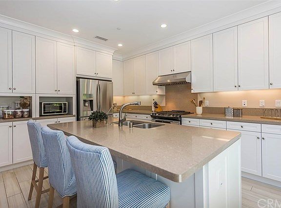 One of the lowest priced 3-Bdr homes in the prestigious community of Stonegate! Semi-Detached, model perfect, light and bright home with an open floor plan. Featuring spacious great room with high ceilings, contemporary styling and lots of room for entertaining. Chef's kitchen features stainless steel appliances, gas range, Broan hood, upgraded cabinetry, ceaserstone counters, water filtration system and a huge center island. Other features include vaulted ceilings, custom blackout Roman shades, 100% basswood plantation shutters and upgraded Marazzi tile downstairs as well as extra plush carpet with premium padding upstairs. Dining room with sliding glass door overlooks the lush, private, wrap-around backyard - a perfect place to relax, entertain or dine outside. Large Master Suite has lots of light with a spacious walk-in closet just off the bath. Upstairs also features an interior laundry room. The two-car garage with specialty crafted shoe cubbies and a tankless water heater has direct access into the house and out to the backyard. Walking distance to the Blue-Ribbon Awarded Stonegate Elementary School, Egret Park (with tennis courts and pool) and the tranquil greenery of the 5-mile Jeffrey Open Space Trail. Top-Ranked Northwood High School. Enjoy abundance of resort-like community amenities: the junior Olympic pool, spa, sport courts, playgrounds, and clubhouse. Close to Woodbury Town Center, the Market Place, Irvine Spectrum, the Great Park and much more.