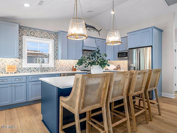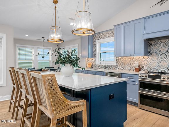 Step into a world of unparalleled luxury with this stunning designer home, a true gem in the heart of Holden Beach. This two-story, 4-bedroom, 3-bathroom oceanfront masterpiece has been meticulously remodeled from the studs up. You'll enjoy the custom cabinetry, custom paint colors, premium LVP flooring throughout, and the hand-crafted elements throughout this coastal home.