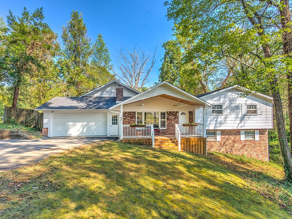 This tri-level house has hardwood floors throughout the main level with a wood burning fireplace in the living room. The kitchen is an eat in kitchen with french doors to the 40 x 12 foot covered back deck. The back yard has a wood privacy fence, a shed with electricity, and a chicken coop. The family room downstairs has a wood stove and french doors that open to the back patio. Downstairs also includes a laundry room with a half bath and an office. Beautiful front covered porch leads out to a large front yard.