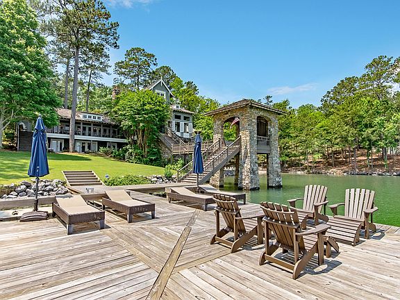 New Price and FULLY FURNISHED! Enjoy resort style living on the Old Harmony Branch of Lake Martin with this remarkable six-bedrooms, six-full bathrooms, jack and jill bath and two half bathrooms with 250+- waterfront estate. Enter this magnificent retreat with oversized wood panel doors, the foyer is custom designed with slate and parqueted oak for an immediate wow factor that greets your guest. Throughout the home you will find hand-forged iron hardware details specially made for this property, that include the scones, doorknobs, hinges, latches, bathroom fixtures and iron chandeliers in the den and hallway that leads to the primary suite. The open concept living area is an entertainer’s dream, with a stunning floor to ceiling stone fireplace in the dining area, chestnut coffered wood beams and a custom wainscotting paneled wall leads into a chef’s fantasy kitchen, with an eight-burner stove, double oven, and commercial ice machine. A large island with ample storage will make mealtimes a breeze. The highlight of this room is the wall of glass doors that leads to a screened porch connecting the outside in with abundant natural light and lake breeze. The den offers a custom designed wainscotting wall enclosing a floor to ceiling stone fireplace, reclaimed wide plank oak flooring, an endless list of flawlessly designed iron hardware details and bar sets this room apart, finished with a stunning view of the lake in the oversized windows. An astonishing hallway with custom floor to ceiling wainscoting panels surrounds a stone fireplace with an extraordinarily built-in mirror and console with limestone top, an antique brought in from England. The exposed chestnut coffered ceiling leads to the antique doors from France specially chosen for this impeccable primary bedroom suite with a his and her bathroom, private washer and dryer located in the walk-in closet, and private access to the terrace. Four custom designed bedroom suites also with access to the oversize terrace patio. A distinctive feature in one of the bedrooms includes a built-in raffia and brass nail headboard designed by interior designer, Philip Sides. A sixth impressively sized guest suite bedroom with a his and her bathroom completes the living area. This home is an entertainer’s dream, the main level of the home, outside porches, rock pavilion and dock are wired with a top-of-the-line sound system and custom lighting. Enjoy a night in the media room with a breathtaking stonewall as the focal point, a full bar provides all the necessary storage and convenience to host the ultimate movie night. Head outside for several secluded sitting areas; start with the loggia, an outdoor covered porch with wood shutters, custom designed with the same chestnut coffered wood beams as the interior of the home. Open the wood shutters and bring the lake air straight to you and your guest. A larger planter, visible from the loggia, is a civil war sugar pot from a sugar plantation in Louisiana. An extended deck leads to a jaw dropping rock pavilion that sits above the lake. This special covered area is a unique feature only found at this estate. Adventure down to an oversized deck with built in bench sitting before you reach the multiple boat deck with pier, two PWC lift and seawall. For More Information about this Listing or to View all of my Listings please visit www.HomeOnLakeMartin.com or Call Me Today at 334-312-0928 to Schedule a Private Showing!