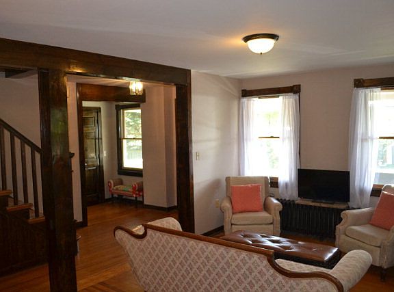 Charming Old Style home right in the village!! Beautiful woodworking and hardwood flooring throughout. Chefs kitchen is complete with a brick encased Charcoal stove. Bright open living room makes great for entertaining! Brand new bath with washer and dryer hookups and radiant floor heat on the main level. Upstairs there are 3 bedrooms and another full bath. Stairs lead to large attic ideal for storage. This home also has a great large fenced in yard perfect for kids and pets! Sellers have done many tasteful improvements making this home a must see!