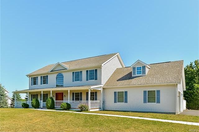PLEASE CALL GILLIAN STEWART REAL ESTATE TO SCHEDULE AN APPOINTMENT 845-855-5092. Lovely Center Hall Colonial sited on 1.68 acres with pastoral views. The large front covered mahogany porch is perfect for watching the sun set. The house itself has 3 BR's, 2.1 baths, an enormous eat in kitchen with hickory cabinets, Corian counters, tile flrs. & sliders which open to the pool. The family Rm. has a gas fireplace. There is a formal DR & formal LR. Hardwood floors on the first level. Upstairs, the oversized bedrooms all have custom wall to wall carpet. The full finished basement has a TV screen, projector & movie style seating & a pool table which is all included in the sale. The in ground gunite heated pool is salt water chlorinated w/auto pilot salt system. An added bonus is the whole house generator. The location can't be beaten, close to highways, trains, Pawling Village & Wingdale Village. Taxes don't include STAR exemption of $856.