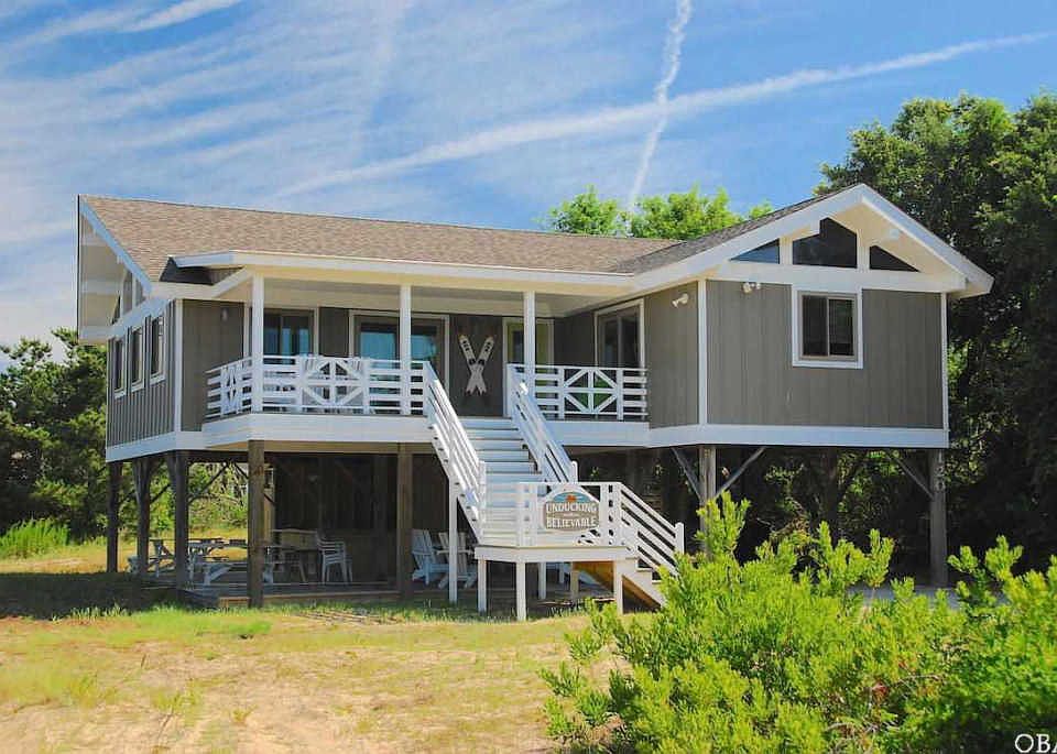 Looking for something a little different for your Outer Banks beach vacation this year? You've found it at Unducking Believable. This funky cool, eclectic beach house will capture your spirit as soon as you enter. Surrounded by mature vegetation, there's a lovely feeling of privacy as you take in the exterior. Enjoy the convenience of a carport and a great outdoor seating in the shade. It's the perfect way to enjoy an afternoon glass of sweet tea or wine. In the evenings, revel in the soothing warmth of the hot tub, as you gaze at the star-filled sky over the Outer Banks. The wide front porch will welcome you with plenty of comfortable Adirondack chairs to sit and enjoy your morning coffee or tea. As you enter the front foyer, the spacious great room will greet you. With vaulted ceilings and wood beams, the space is open and infinitely inviting. Your group will enjoy the striking and unusual wood paneling and the cool coastal colors throughout the home. The wood floors give the home a cozy, beachy feel. The living area has plenty of comfortable furniture to sink into as you all gather around to watch a movie on the flat screen TV or just enjoy some conversation. You'll love the beautiful side tables and thoughtful touches that will make you feel welcomed and at home.The dining area features a unique table with seating for 6 and a gorgeous antique cabinet that will capture your heart. The kitchen with its Carolina blue walls and sleek brown cabinetry is beautiful and unusual and your group will love creating meals together there! With plenty of counter and work space, everyone can hang out together and the seats at the breakfast bar make it extra welcoming. A King Master suite is huge, with vaulted ceilings and a private porch entrance. Enjoy a few quiet moments with a good book or your own thoughts in the cozy seating area. A second bedroom with a Queen and the third bedroom with two Twins round out the flexible sleeping arrangements and share a full hall bath. Enjoy a funky fun vacation at Unducking Believable, your favorite Outer Banks vacation home in Duck! 2016 Upgrades include: new hvac, new porch, new roof, new windows, new plumbing, new kitchen cabinets & tops, new tiled bathrooms, bamboo flooring, new carpet, new interior paint, new siding, new exterior paint, tiki bar area downstairs 2018 Upgrades: new pool and fence