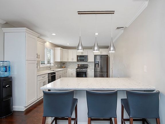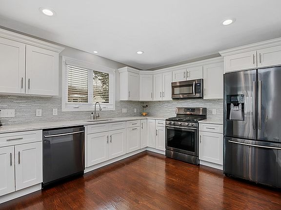Many upgrades when purchased in 2018. Beautifully redone with a fabulous backyard deck and hot Tub. New Air conditioning in 2018, new kitchen and upgraded baths. All recessed lighting, floors redone, new baluster railing, new glass shower enclosures and much more! Great lower level playroom with carpeting and storage room .This property is in a flood zone.Great neighborhood with walking distance to all schools.Very oversized 2 car garage.