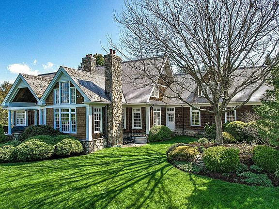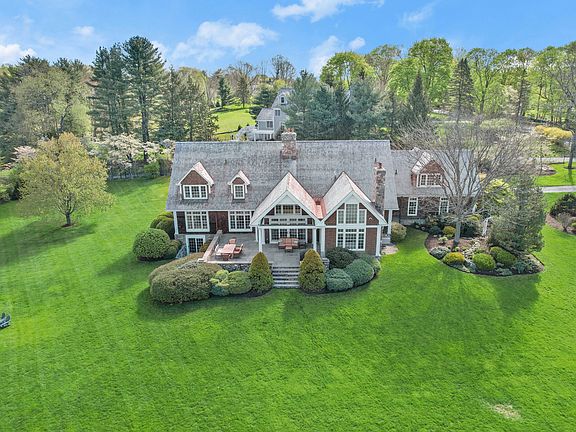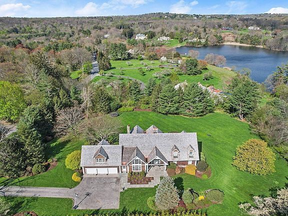 EXCEPTIONAL architectural beauty set in the premier location of Olmstead Hill - with beautiful water views of Streets Pond from nearly every room! This one-of-a-kind Cape Cod style home is surrounded by sprawling property including perennial gardens, flowering trees, bluestone patio terraces, & fabulous level playing yard. You'll love the stunning double story foyer, dramatic floor to ceiling windows, inviting cherry cabinet kitchen with the open vaulted ceiling family room & fieldstone fireplace, private first floor office, and enormous custom mudroom - where every member of the family has their own space! Primary first floor bedroom with beautiful lake view offers oversized walk-in closet & elegant dual-sink bathroom. Four spacious bedrooms on the 2nd level, 3 full baths (two en-suite), large bonus room and catwalk landings overlooking the formal living/dining rooms & foyer. The VERY UNIQUE finished walk-out lower level (adds 2300+ sq feet) with full bath - and FABULOUS SPORTS ROOM - every athlete's dream! You can also get creative in the ART room, work-out in the EXERCISE room, and spend endless hours in the home theater MEDIA room. Additional features: NEW cedar shingle roof, NEW Bosch double ovens, NEW HVAC units, newer mudroom & back staircase, new kitchen backsplash, bath tile upgrades & sparkling hardwood floors throughout. 3 car garage loads of storage on every floor & oversized laundry room on the first floor. A very, very special home! Custom built by Mr. Sandy Kellogg of Kellogg Brothers Homes, Wilton CT. Mr. Kellogg was well known for his authentic architectural home designs that fit seamlessly into the historic and rural settings of Wilton. Included in the sale: Satellite Dish on roof, exterior wooden playground, and portable generator.