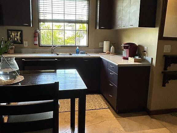 One bedroom unit within walking distance to beach. Concrete floors, washer and dryer in unit, small courtyard with water feature. Attached to main house.
