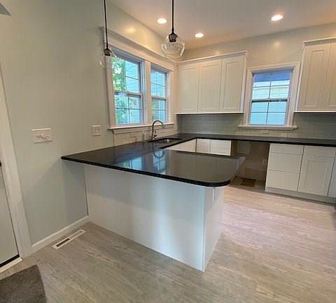 Welcome to 120 Ontario! This lovely Victorian home has been completely updated. Keeping the old style charm with modern amenities. Approx. 2000 sq ft boasts a new kitchen, granite countertops & gas stove. Beautiful hardwood floors & trim. Many windows allow natural light, tilt in for cleaning.Three STUNNING leaded glass windows in dining room. Unique cafe swing door between the dining room & kitchen. TWO sets of pocket doors in the living room with gas fireplace and recessed lighting.Convenient entry foyer/mudroom with storage cubbies & closet. Newly carpeted front room allows for an office, playroom or den. Freshly painted throughout. Ceiling fans, recessed lighting in several rooms. Double staircases, front and rear for easy access to three large bedrooms & two full bathrooms. Both baths have tiled floors and shower/bath combos. Master has double sinks & soaking tub. Large closets. Full walk up attic allows for addtl. storage. Electric & plumbing updated. New gas HWT. Hookups for w/d in basement. NEW tear off roof to be completed by seller. NEW back deck & front porch. Updated garage. Conveniently located to local eateries & the canal path. This charming home is MOVE IN READY!