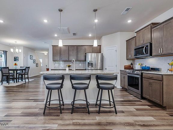 WOW!! 4-bedrooms, 2500+ square feet with a bedroom downstairs and a FENCED backyard backing to WOODS! Gorgeous LVP flooring throughout the downstairs, granite counters in your Chef's Kitchen with stainless appliances and gas range! Screened porch with extended patio gives you plenty of room to spread out and entertain! Garden area for all of your prized fruits and veggies, and a full privacy fence with views of the woods behind you. Upstairs you'll find generously-sized bedrooms and loft! Minutes from downtown Raleigh and I-40, you've got everything you need at your fingertips! Come see this one before it's gone!