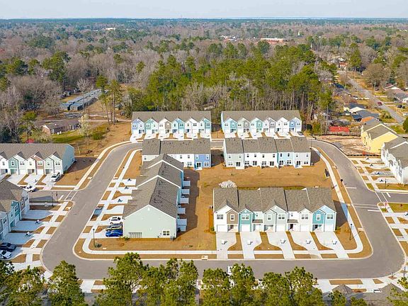 READY THIS SPRING! This home is on a corner lot, is an end unit, and backs up to a retention pond. Welcome to the Townes at Merrimack, nestled in the charming town of Moncks Corner. Developed by D.R Horton, this new construction community offers an opportunity for affordable living with energy efficient townhomes from the low $300s. All or our homes are low maintenance, and come with a 10yr warranty. Whether you're a first-time homebuyer, a growing family, or just looking to settle down, this community has something for everyone wanting to own their piece of the low country.The DILLON is a two-story floorplan with an open concept first floor featuring a spacious kitchen and family room and a single car garage. On the second floor you will find a large primary bedroom with walk-in closet and double vanities, two secondary bedrooms, bathroom, and laundry room. Photos are a depiction of a similar home.