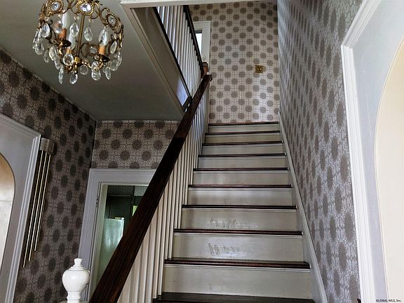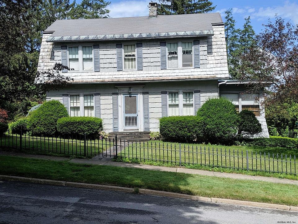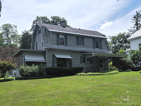 Great older home with character! Hardwood floors, picture windows. Relax on one of the 2 patios with slate floors and awnings above. Curved walls and arch openings. Very large living room with fireplace and a from floor to ceiling picture window looking over the back yard. Formal dining room with drawers and shelving that opens into the breakfast nook. Even the attic has a hardwood floor!!! What a great home with many possibilities!! Close to exit 90 of NYS Thruway, Cooperstown, Albany, Utica and Saratoga!