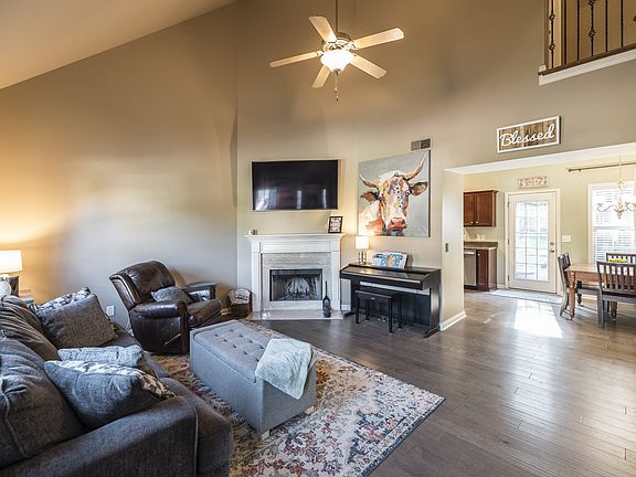 This charming home welcomes guests with its two story vaulted ceiling in the great room with LVP Flooring and a gas fireplace. The kitchen has tons counter space, stair step cabinetry with crown trim, a flat cooktop stove, built in microwave & dishwasher and offers a convenient pantry. The main level Primary Suite has a spacious en suite with dual vanities, private water closet, combo tub/shower and a walk in closet. Upstairs the catwalk above the greatroom leads to two large bedrooms and a huge Bonus room above the garage. The large Privacy fenced yard is a plus and perfect for children to play, pets and outside entertaining on your spacious patio. Outside storage shed remains. The Maples Community Pool & Clubhouse access is available for an additional seasonal family pool pass fee.