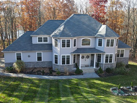 Pristine Lake Front Colonial!Come see this stately home to appreciate its beauty and see for yourself the quality of its many upgrades. This lakefront home sites on a wooded double lot that is 2.53 acres. Enjoy the many features of this incredible home with many upgrades including a whole house generator, whole house surge suppressor, automatic lawn irrigation, chandelier lift, smart home features, wired for data, and a security system with wired cameras. This home has 4 bedrooms 3.5 baths with a guest suite on the first floor, the primary suite is on the second floor along with 2 other bedrooms and a full bath separated by a nice loft area. The main floor has a formal dining room and living room for entertaining, tv room, family/sunroom, large kitchen with island and counter seating, half bath, and laundry room. This home has forced air heating and central air, 2 car garage, instant on hot water heater, full unfinished walk out basement, it landscaped with stone paver walkway and stairs leading to the back yard, firepit, and path down to the lake and dock.Some of the amenities with Conashaugh Lakes include: a community pool, clubhouse, kid's playground, tennis court, basketball court, and a boat launch with storage racks, all in a gated community.