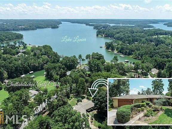 This sprawling ranch offers the best of both worlds- Chattahoochee Country Club location w/no HOA. Brick exterior & this beautiful Lake Lanier setting welcome you to this 3 bedroom and 2.5 bath home. Large basement bedroom/or bonus room. Natural light and vaulted ceilings are everywhere. A stately presence as you drive up. Large windows open to a stunning aerial seasonal lake view. Private yard + fenced dog run. Beautiful gardens have been planted throughout the years and the property comes to life in the Spring. Desired location & convenient to downtown Gainesville.