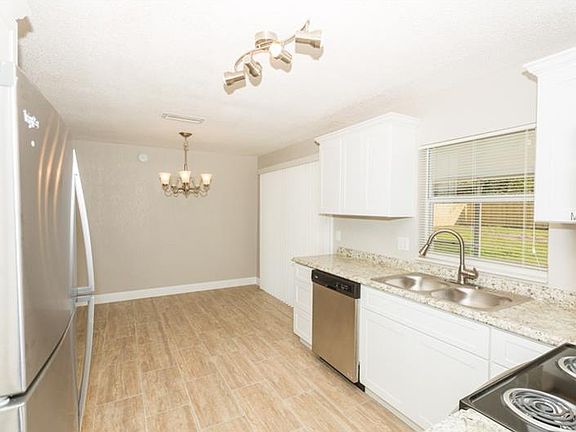 Completely remodeled 3 bedroom/2 bath single family home featuring new flooring throughout, new interior/exterior paint, new interior doors, new 5" baseboard, new light fixtures & ceiling fans. New central heat & air. Beautifully remodeled kitchen w new cabinets, countertops, stainless steel appliances. Both bathrooms have been completely redone. New wood privacy fence. Screened porch. 1 car carport. New blinds. This one won't last long.